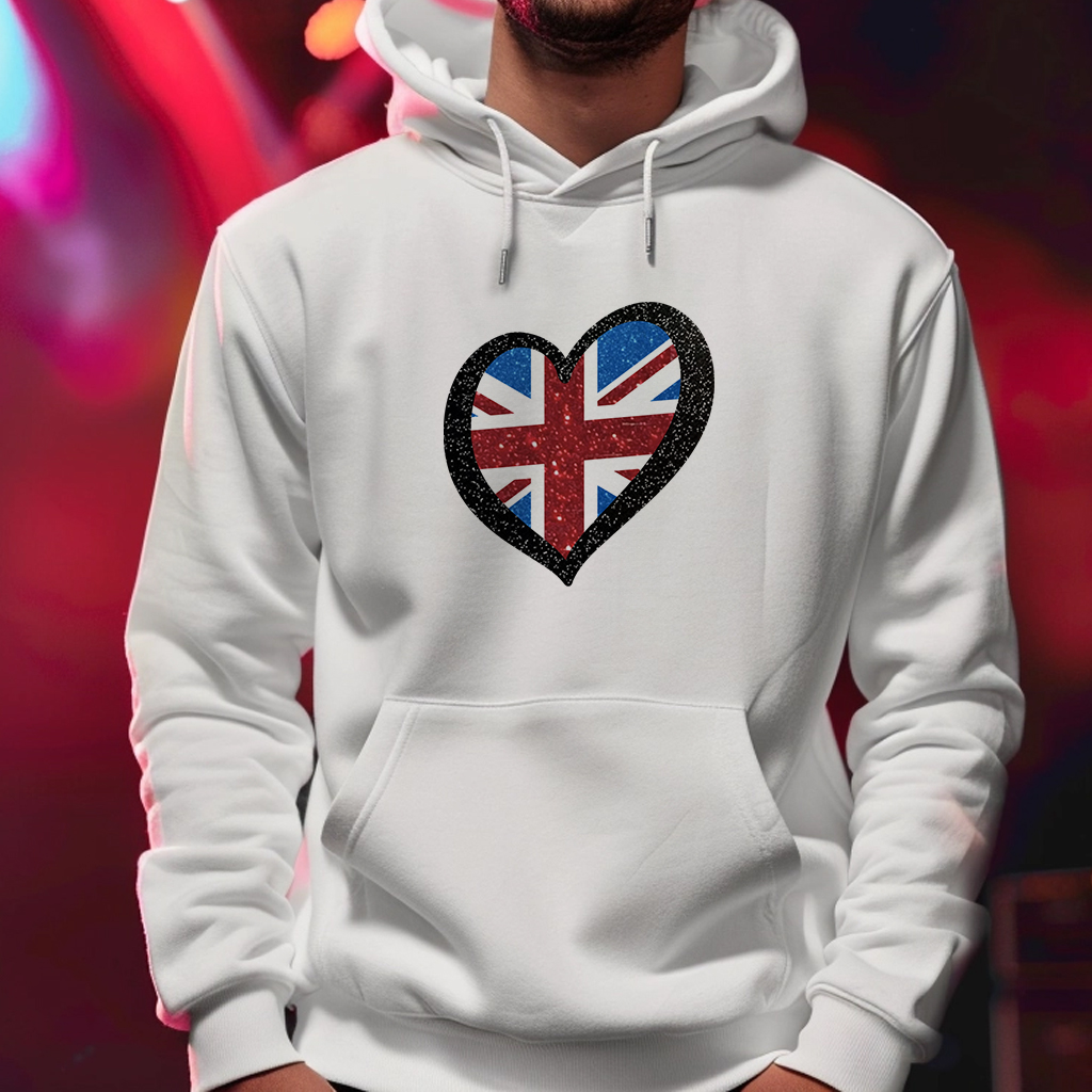 UK Glitter Heart Hoodie